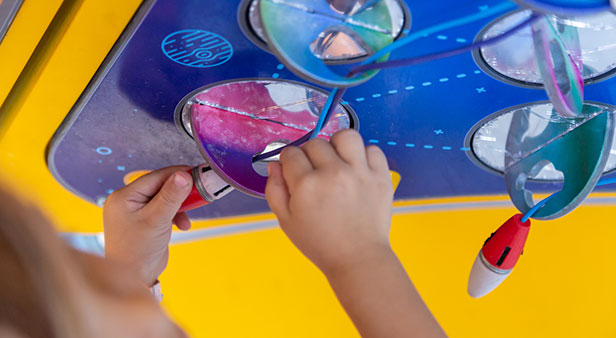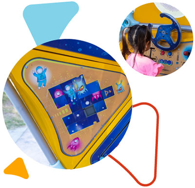 El domo cuenta con varios componentes que incentivan el juego simbólico, la resolución de problemas y, de manera integral, propone actividades que estimulan la imaginación y la motricidad, tanto fina como gruesa. Todo esto parte de una temática espacial y tecnológica que sirve como disparador para divertirse aprendiendo.