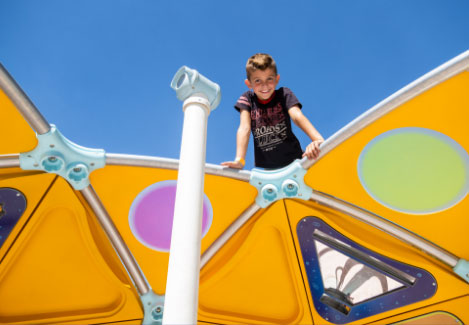 El Domo Cósmico está preparado para permanecer a la intemperie y es capaz de soportar todos los tipos de climas, a lo largo y ancho del país. Cumple con las normas de seguridad vigentes y es adecuado para resistir el peso de niños de todo el nivel inicial e incluso primario. También puede ser utilizado por niños con discapacidad.